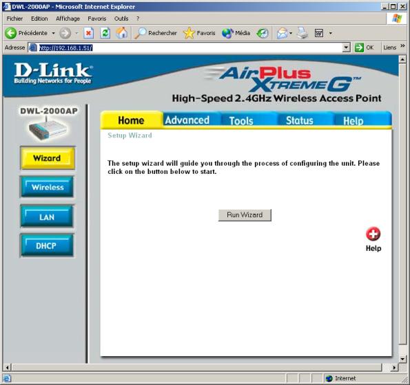 Si on clique sur le bouton "Run Wizard" au centre de la page d’accueil, on lance le Wizard, qui s’ouvre dans une nouvelle fenêtre.