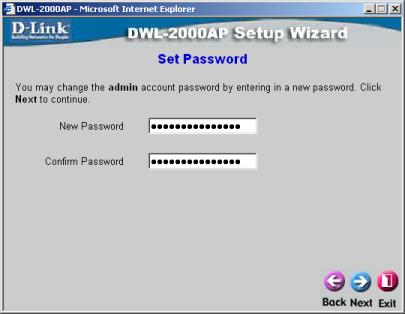 Cette page permet de changer le mot de passe de l’administrateur de la borne. En cliquant "Next", les changements sont mémorisés, jusqu’à la validation de la dernière page.