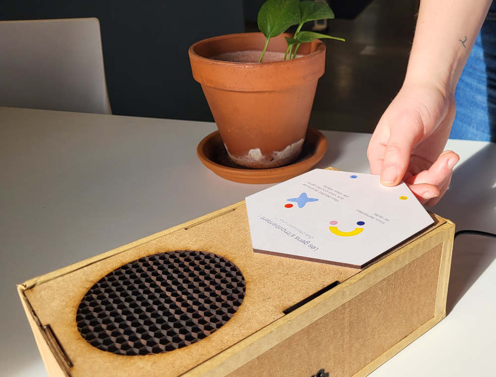 "Si tu savais" diffuse une ambiance sonore qui illustre vos choix. L’outil intègre ainsi un capteur électronique de puce RFID, un mini-ordinateur et une enceinte.
