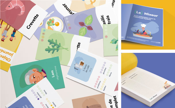 Dans {Le} Mixeur, les joueurs sont invités à collaborer pour imaginer des menus et recettes en accord avec les besoins nutritionnels des personnes âgées. Tout au long du déroulement, des cartes conseils permettent d’expliquer les liens entre l’alimentation et la santé, et plusieurs extensions viennent pimenter le jeu. Le jeu est adapté à un usage intergénérationnel.