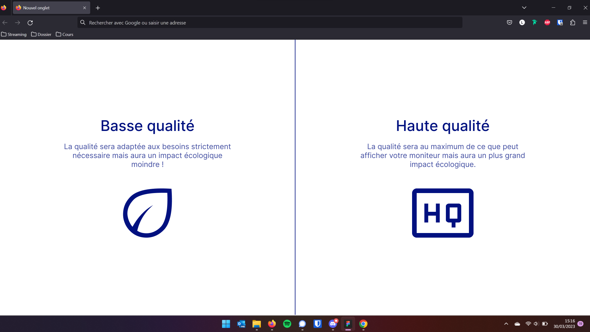 Une fois le choix fait, l’utilisateur arrive au lecteur de contenus qui est injouable dû à la quantité de particules de pollution générée par le choix de qualité fait précédemment (plus de particules si le choix de qualité était “élevée”).