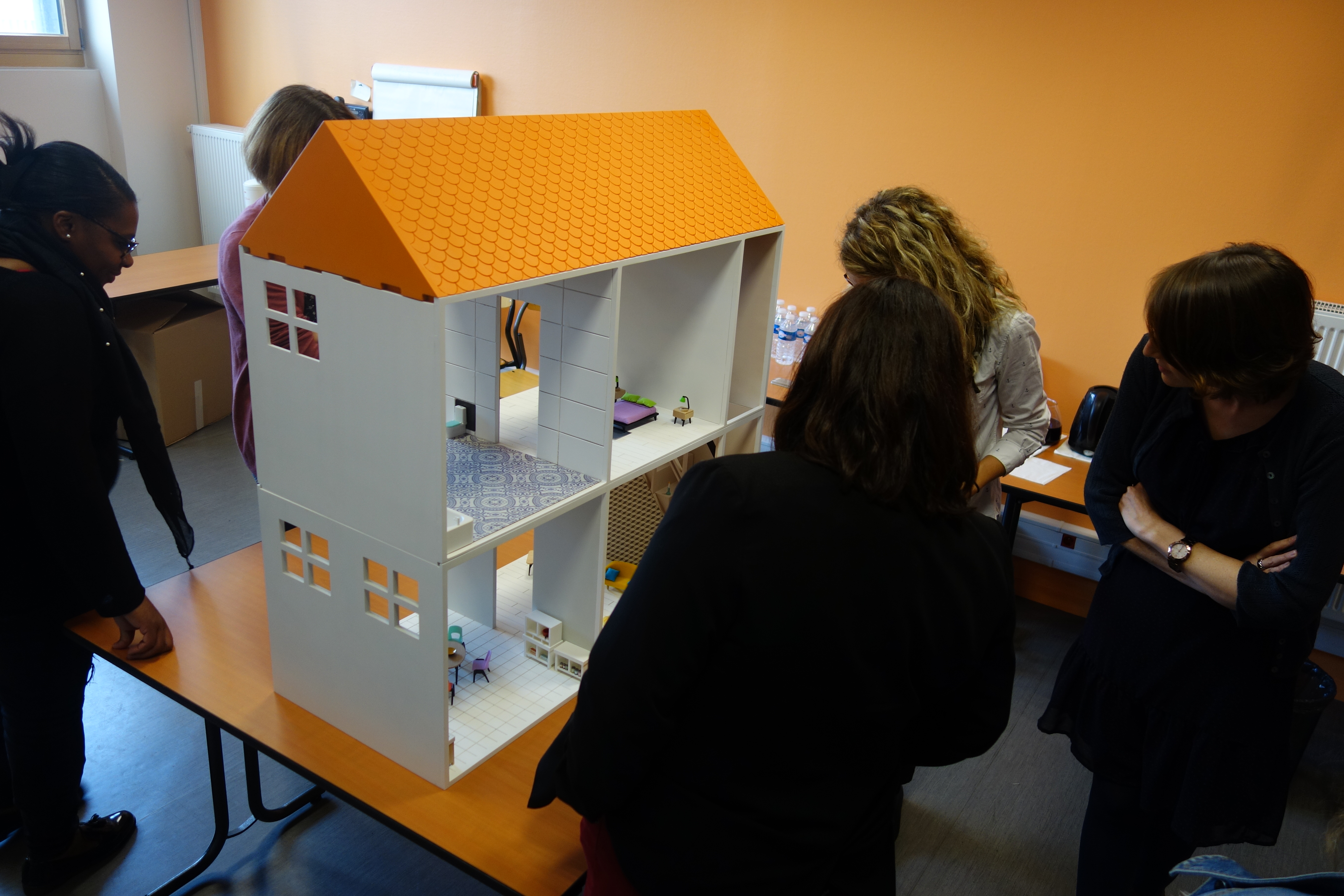 - Une maison miniature, un outil de médiation et de sensibilisation qui permet de reproduire à échelle réduite des espaces et des aménagements pour qu’un animateur puisse échanger avec des utilisateurs sur l’adaptation du domicile.
