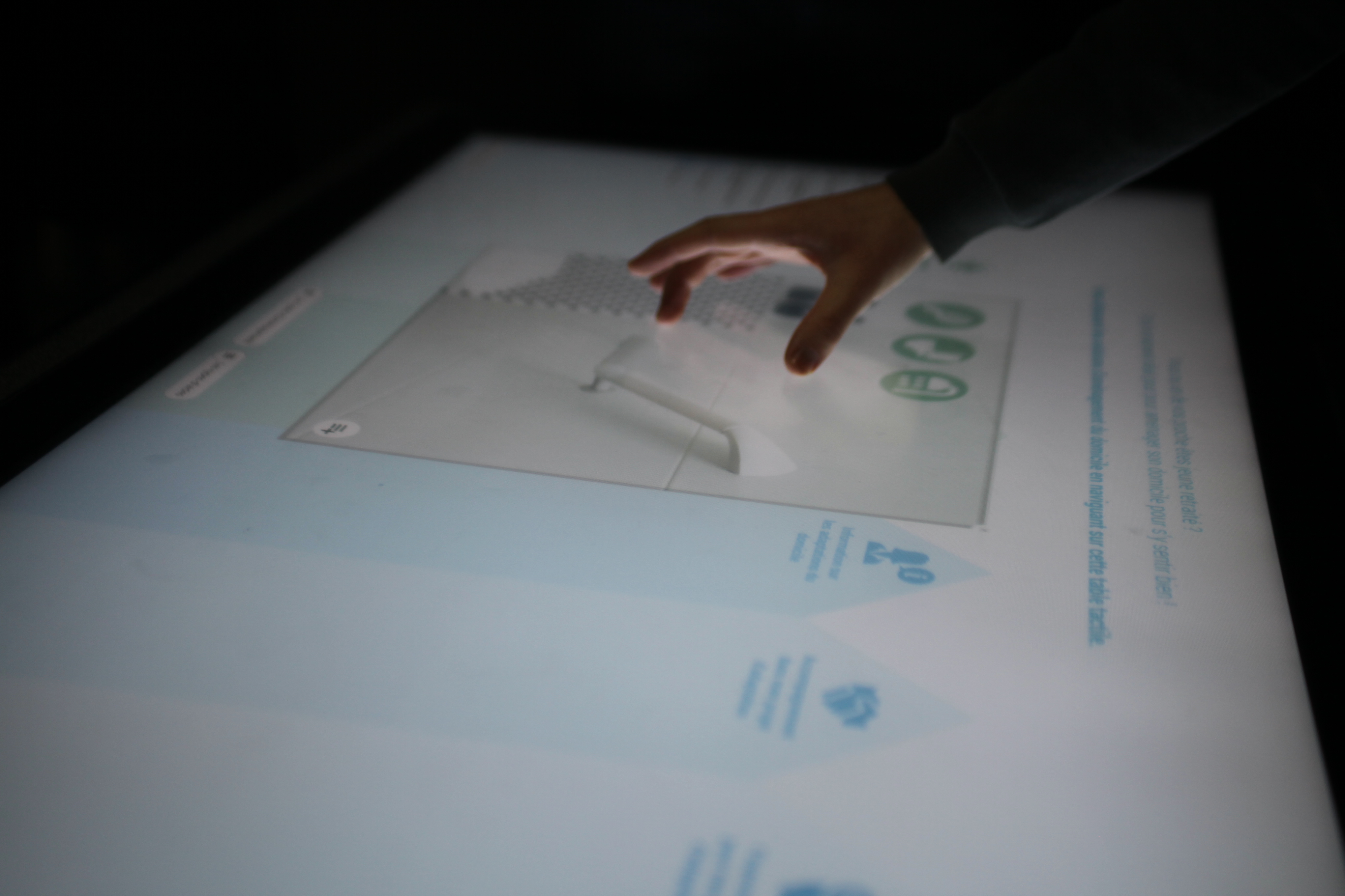 - Une table tactile qui vise a améliorer l’information sur les adaptations et aides techniques existantes pour l’adaptation du domicile à la perte d’autonomie, ainsi que sur les dispositifs de financement