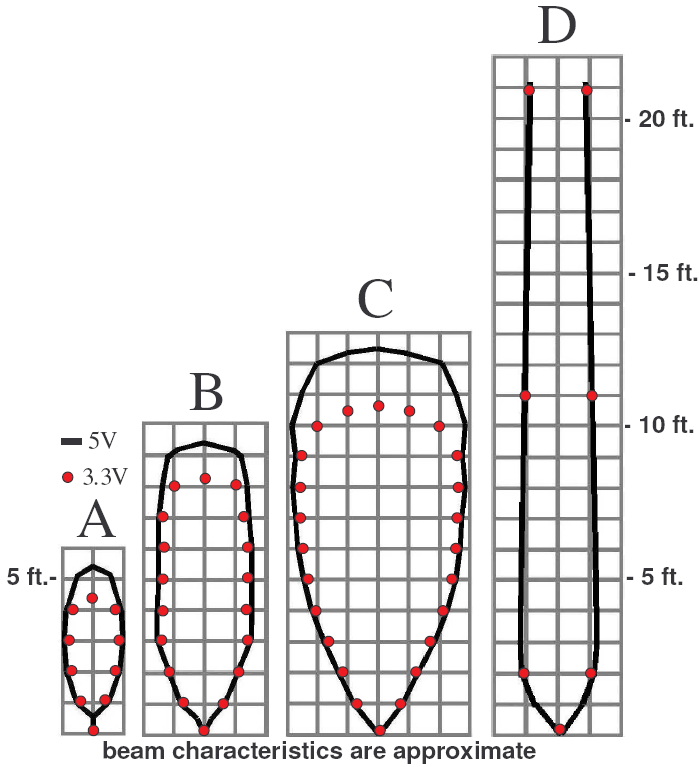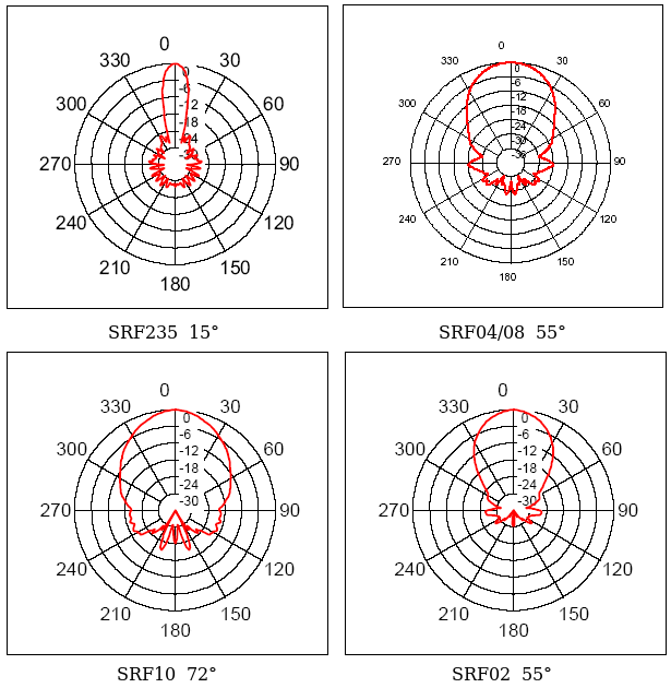 Les produits Devantech ont des plages de détection (beam patterns) différentes d’un produit à l’autre.