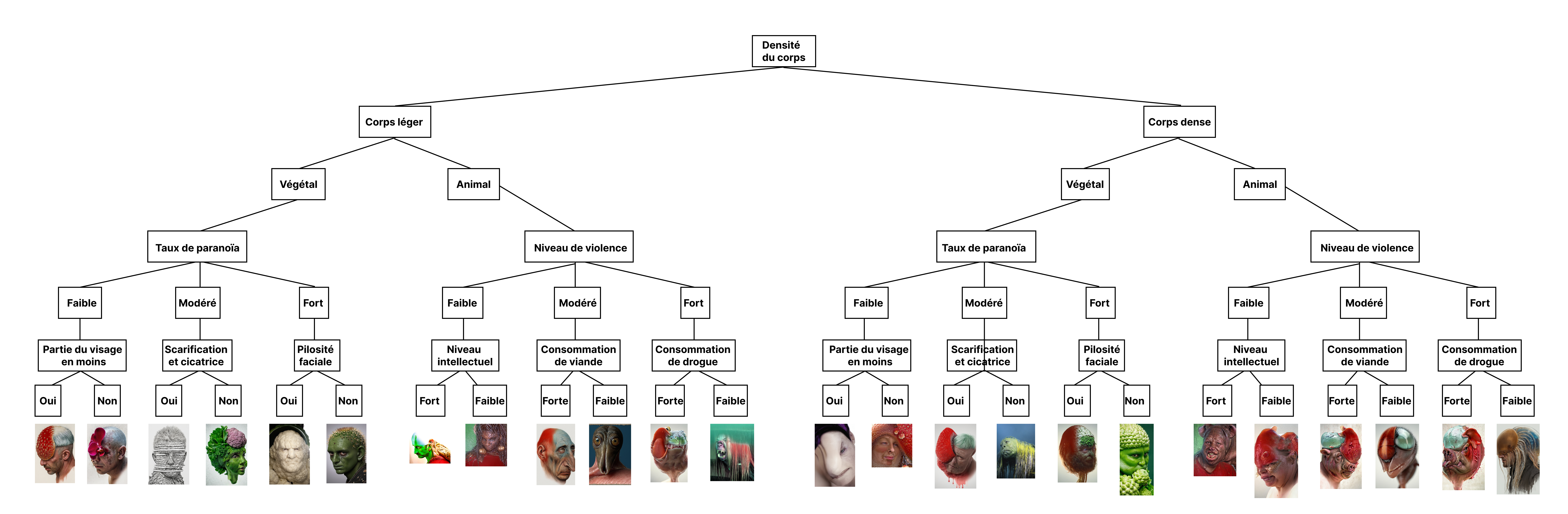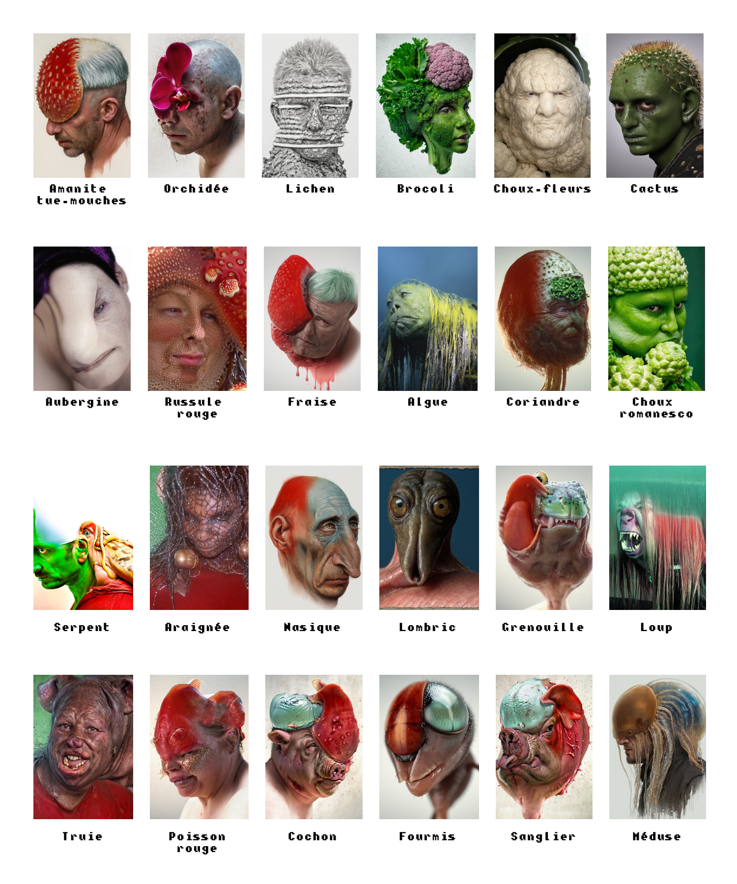 Afin de créer un maximum de diversité, chaque portrait ne se base pas forcément sur la même peinture, le même style ni la même espèce, l’objectif étant d’obtenir des profils variés.