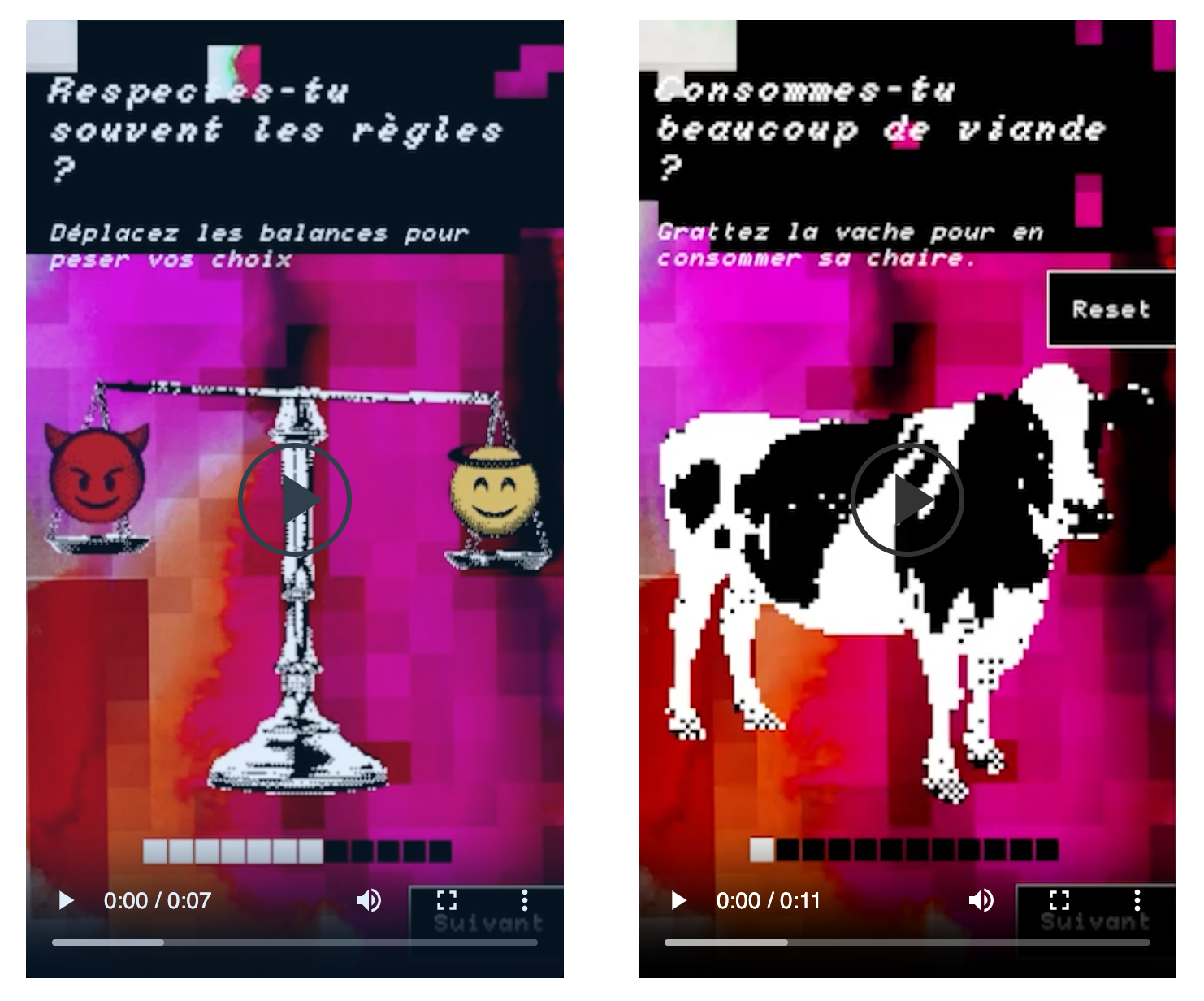 Chaque question est équipée de sa propre interaction, qui fait basculer le formulaire vers un aspect jeu vidéo, où l’utilisateur est amené autant à découvrir comment interagir avec l’interface que jouer avec.