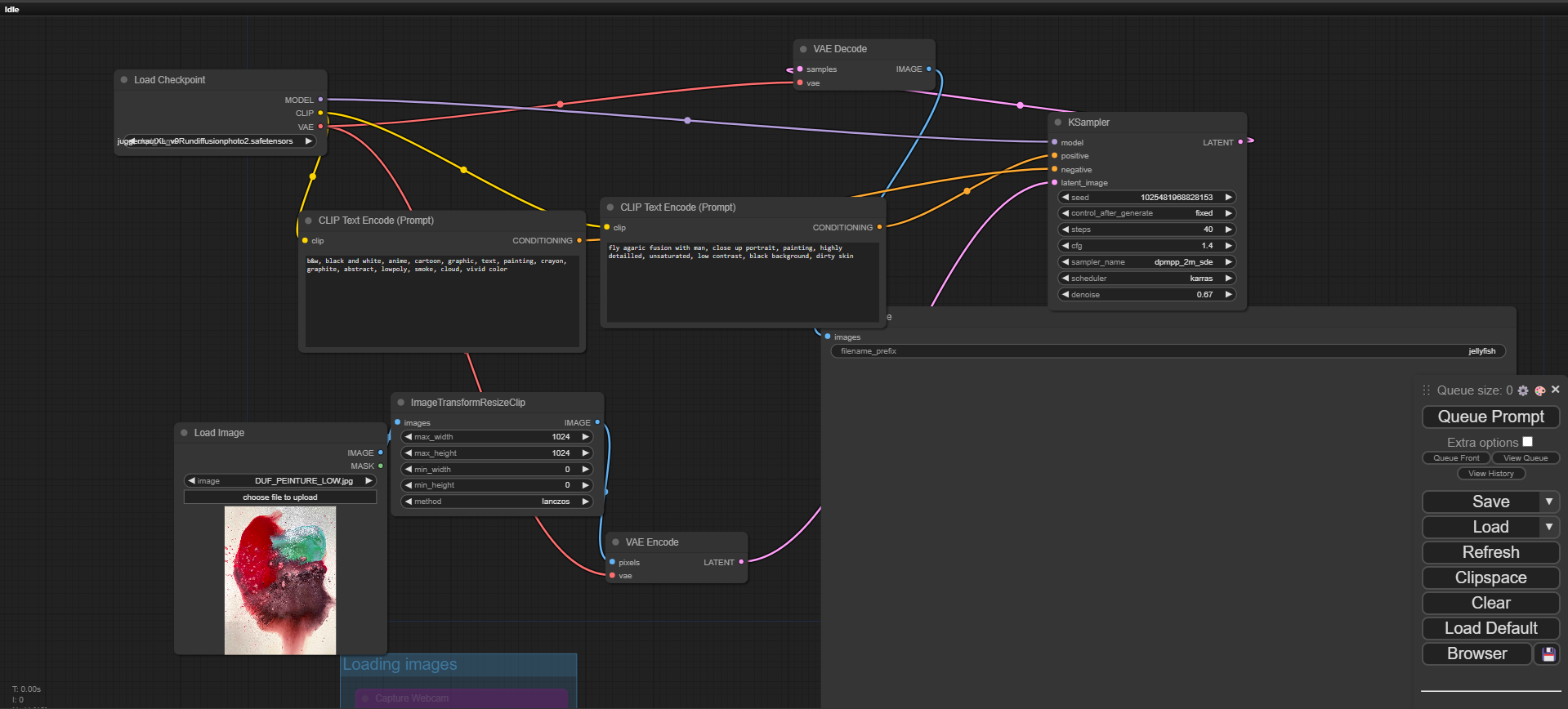 Exemple de workflow sur Stable Diffusion - Les termes “Human fusion with …”, “hybrid human and …” ou encore “mixed with … “ nous ont permis d’obtenir des résultats intéressants, vraiment dans la fusion entre un humain, une peinture et un sujet animal/végétal.