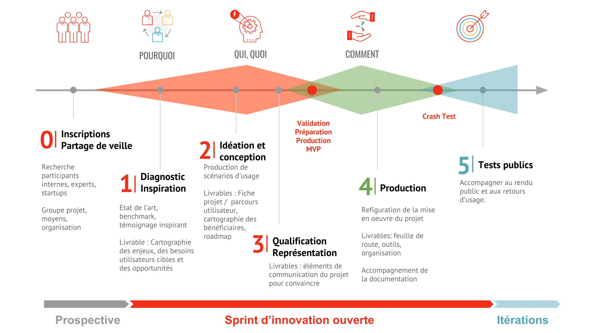 Au cours d’un sprint créatif de deux semaines, des équipes pluridisciplinaires ont conçu des prototypes testables en réponse aux défis identifiés, documentés et diffusés sous licence opensource, au bénéfice de l’ensemble des acteurs.