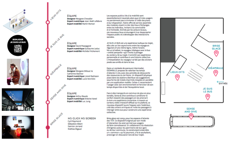 Le programme de R&D proposé a ainsi réuni des acteurs publics et privés financeurs et participants (Alstom et Keolis) début 2018 visant à imaginer plusieurs dispositifs innovants au service de transports durables et responsables favorisant le lien social, le bien-être et renouvelant le rapport au territoire.