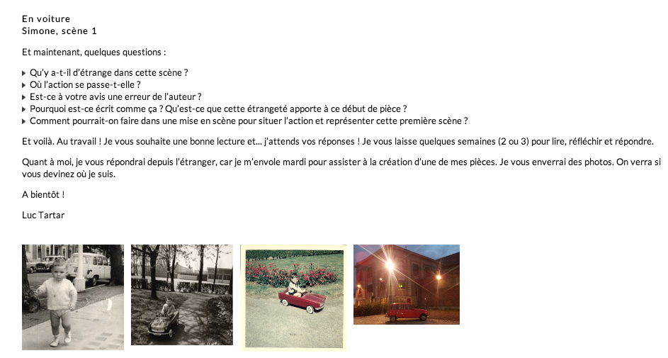 Entre lui et les élèves du Rhône l’échange a pour sujet un texte existant "En voiture Simone".