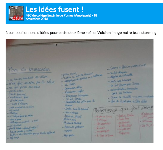 Dans leur classe, avec leur enseignant, ils prennent connaissance des consignes sur l’ENT et organisent leurs réponses. Un travail en groupe, de consultation, discussion sur les forums, échanges inter-collèges, puis un travail de publication.