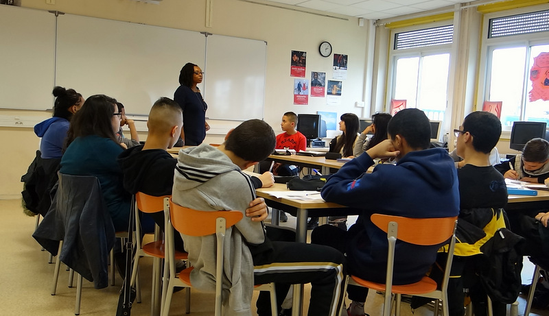 Elle a rencontré tous les élèves et les échanges furent très riches, nourris d’une vraie curiosité les uns pour les autres, et la perspective de la découverte de textes qui ne se dévoileront à tous qu’en fin de projet.