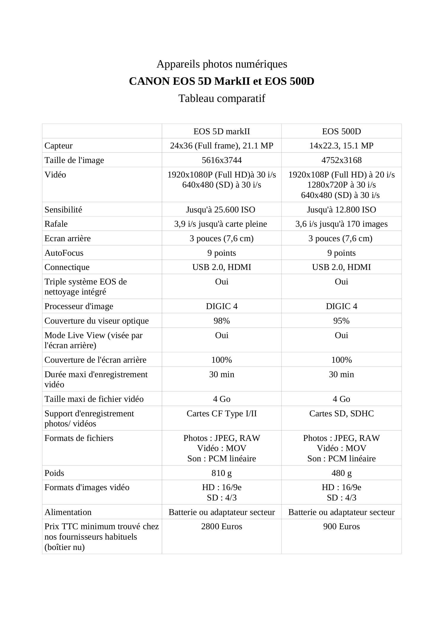 D’où vient la considérable différence de prix (voir bas du tableau) entre ces deux appareils ?