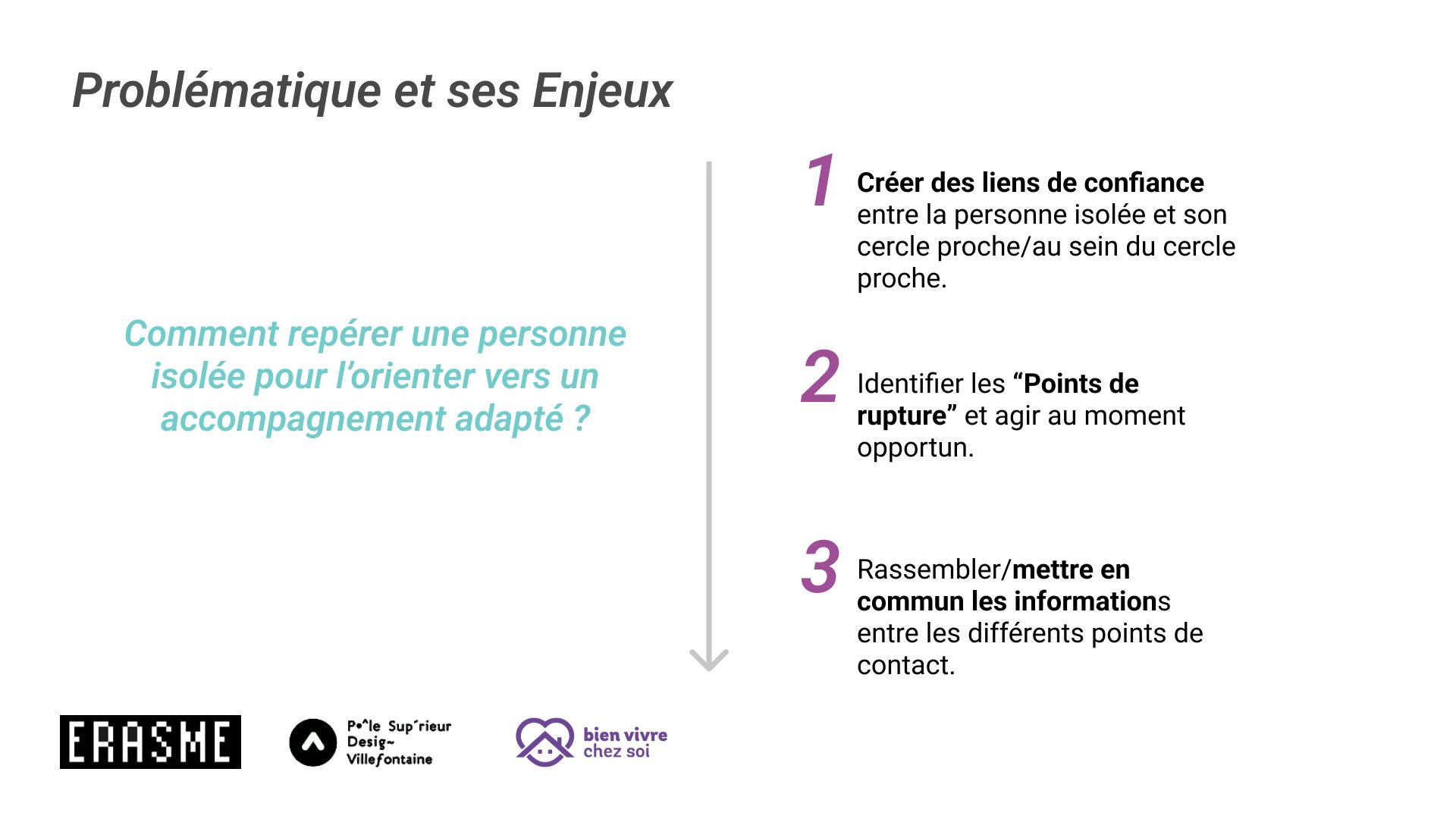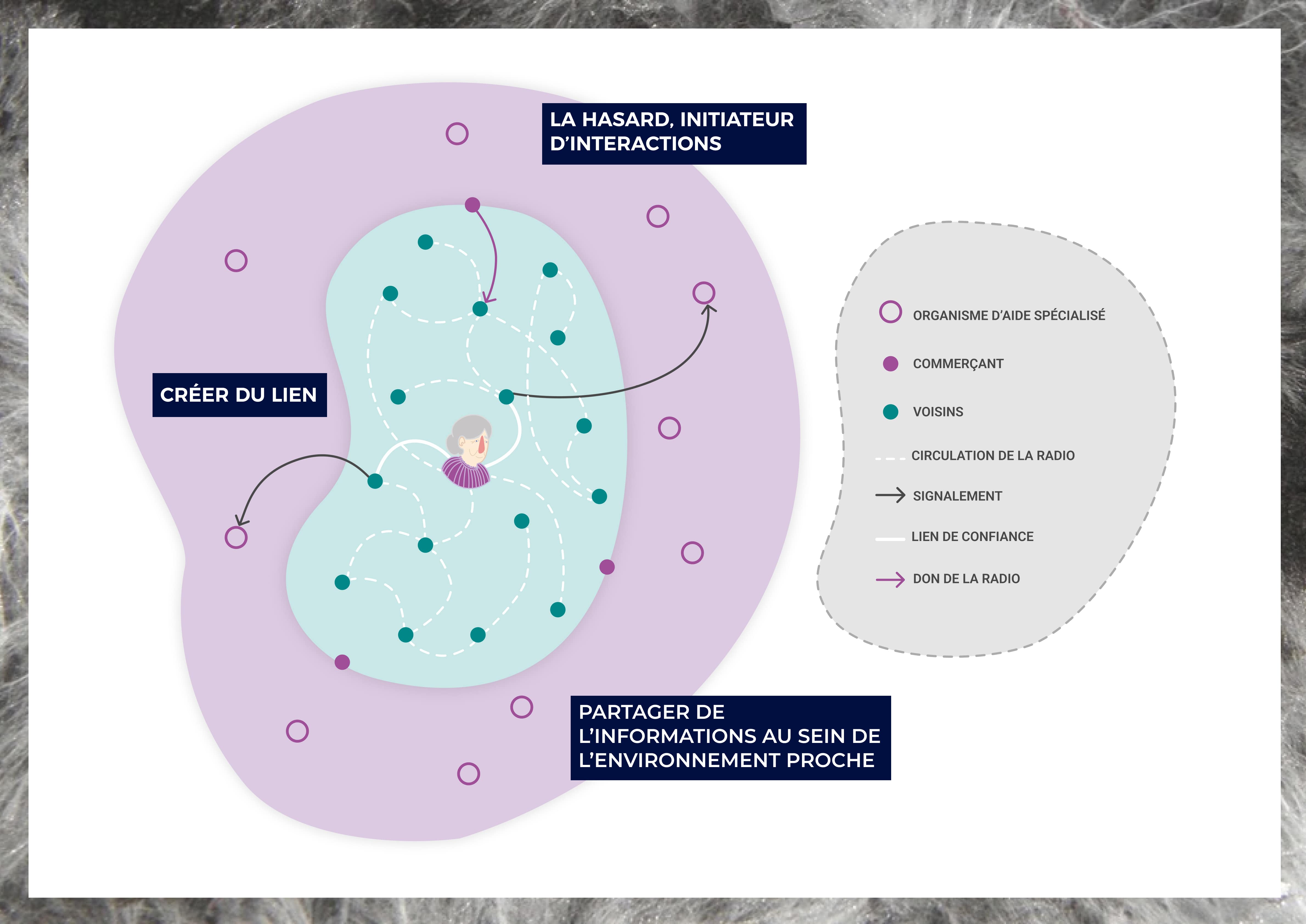 Notre objectif est de donner une voix aux personnes isolées afin que celles-ci puissent tisser des liens avec le monde proche et abondant qui les entoure, et inversement. Les voisins doivent pouvoir venir en aide à ces personnes “invisibles” afin de les rendre “visibles”.