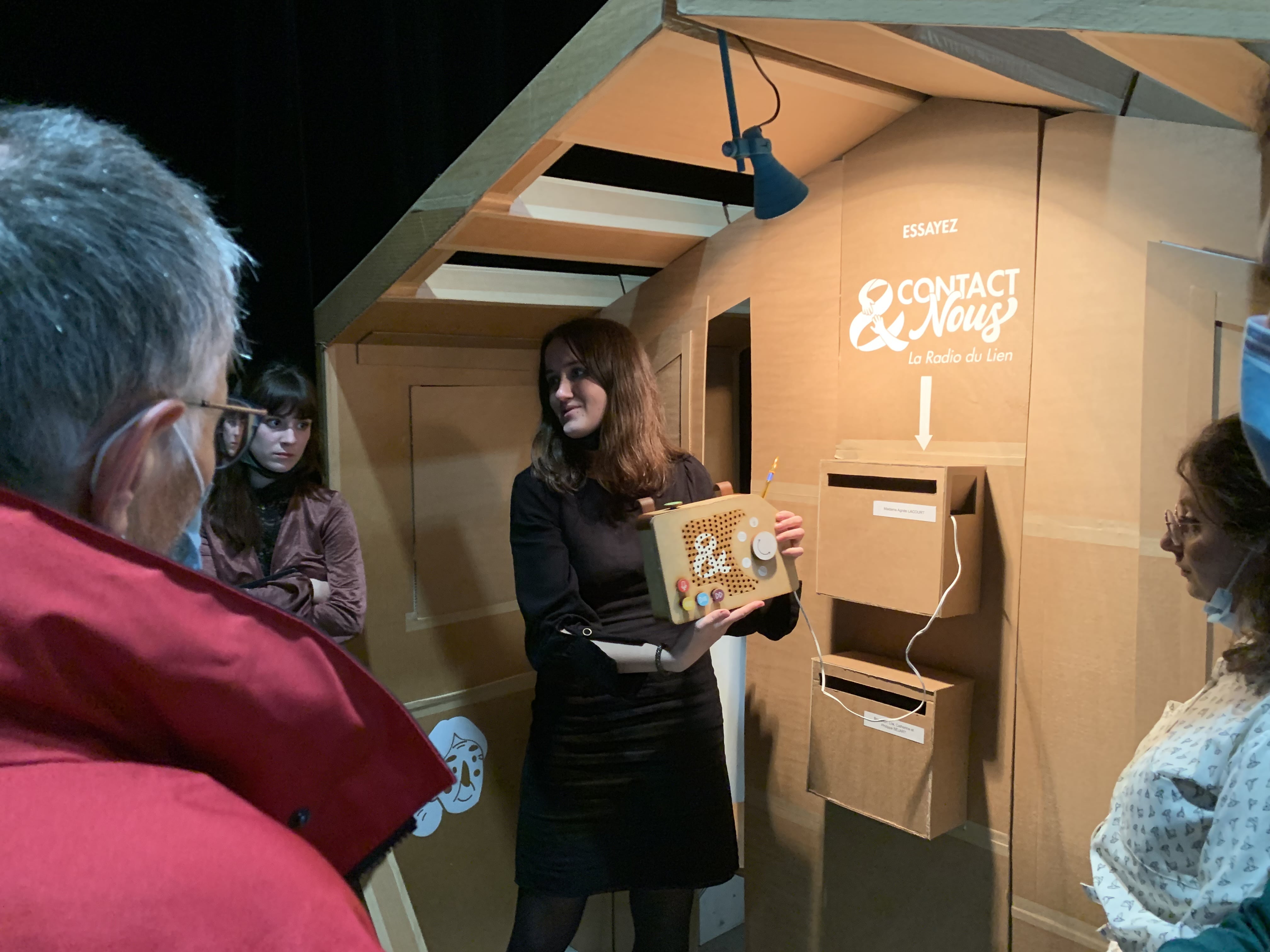 Contact&Nous est un outil d’enregistrement et d’écoute de messages entre voisins. Il se présente sous la forme d’une radio portative.