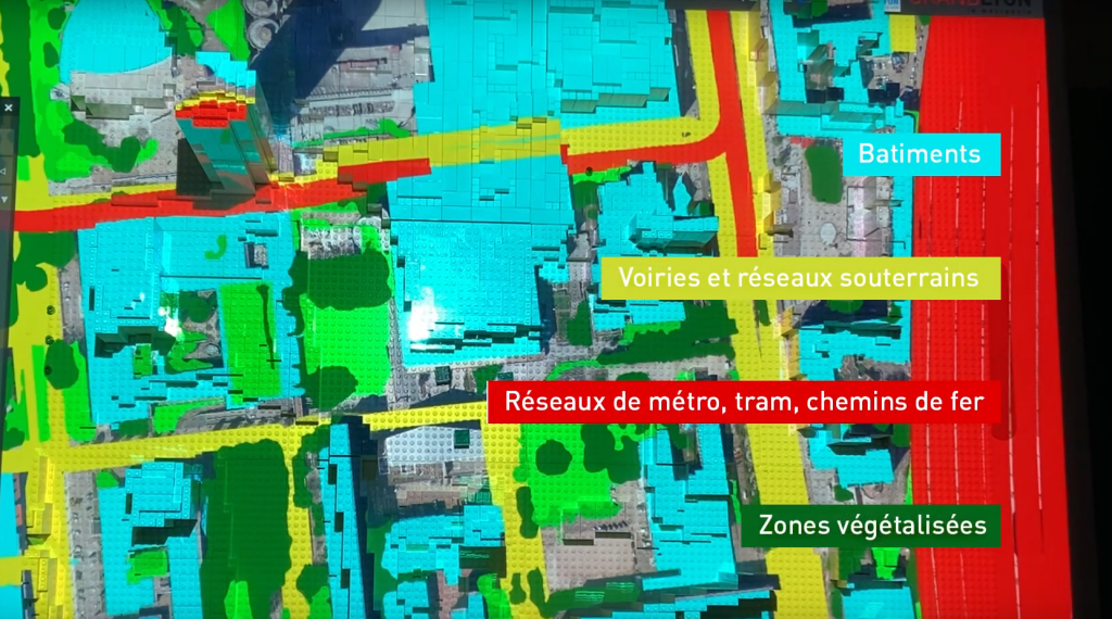 Prenons l’exemple de la végétalisation d’un quartier. Il peut s’agir de prendre des données issues de l’open data du Grand Lyon, de les croiser avec des données de l’Agence d’Urbanisme de Lyon et d’obtenir une carte de la présence ou non de végétaux. L’échange avec les experts en données, en végétation, démontrent vite que ce n’est pas suffisant. Il faut pouvoir mettre en adéquation cette carte qui est un état des lieux avec des possibles potentialités, en relation avec le plan Canopée du Grand Lyon. Il est aussi nécessaire d’aller plus loin en proposant un dispositif de médiation rendant tangible une représentation de ce quartier (avec des légos) et de montrer les “possibles” grâce à une carte de plantabilité, mais aussi une capacité à rendre présentable les possibles scénarios afin de les étudier. Les dispositifs sont aussi pensés grâce à un ensemble de briques techniques réutilisables dans d’autres contextes. Aujourd’hui, végétalisation, peut être demain problématiques de métabolisme urbain sur un autre quartier en pleine mutation ?