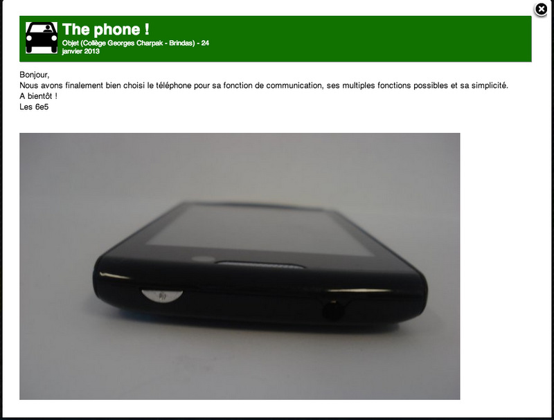 - Les classes vont ensuite choisir un objet, qu’elles vont publier sur le site à la demande de Benedetto, première étape d’un travail collaboratif qui en comportera 5 et les mènera jusqu’à se mettre "dans la peau" de cet objet.