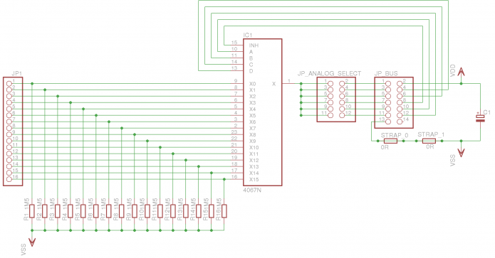 Les resistances de rappel à la masse sont intégrées "sous" le CD4067.