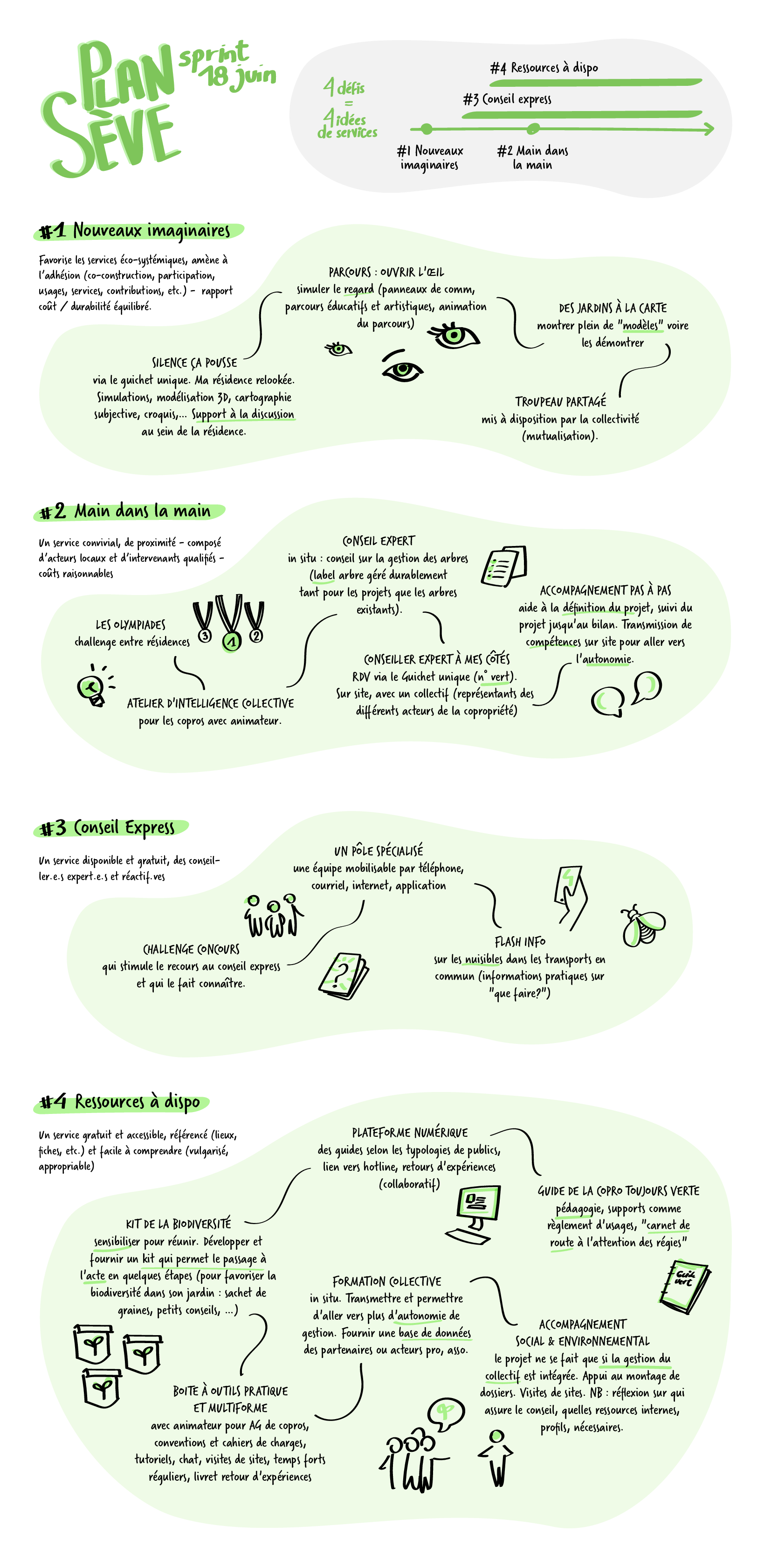 Florian Borg, porteur du projet Plan Sève, a donc organisé avec l’aide d’un référent Erasme, un atelier collaboratif sur une demi-journée. Ce temps de travail a réuni différents acteurs de la végétalisation au sein de la métropole, des bailleurs, des associations et des chercheurs afin de faire converger les points de vue de chacun. La réflexion étant portée sur les besoins des bénéficiaires finaux de ce dispositif d’accompagnement à la végétalisation.