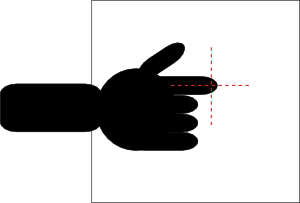 - Etape 4 : Une fois déterminées les coordonnées du point dans l’image, on applique une correction correspondant grossièrement à la taille de l’empreinte d’un doigt, afin d’utiliser le centre du doigt comme référence.