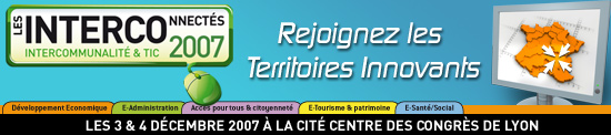 Ne manquez pas le seul rendez-vous annuel des intercommunalités et des Technologies de l’Information et de la Communication le lundi 3 décembre 2007 et mardi 4 décembre matin à la Cité – Centre des Congrès de Lyon.