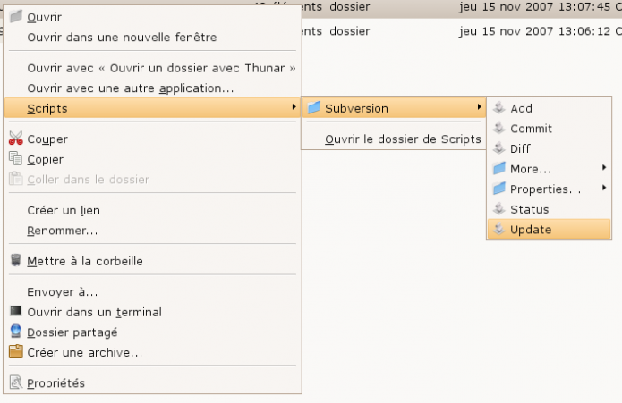 nautilus-script-manager enable Subversionaccessible en navigation contextuelle (clic droit > script).