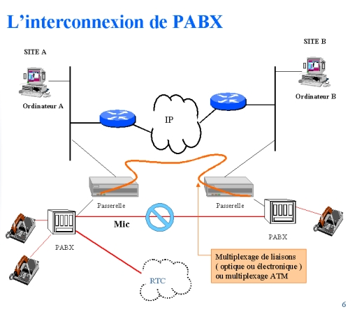 Intérêts : la configuration ne se borne pas à l’interconnexion de PBX, tous les éléments peuvent se contacter. Le réseau IP doit pouvoir supporter un certain niveau de qualité de service
