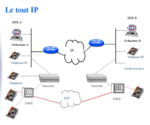 Intérêt : remplacement d’une ligne louée de type RNIS par une architecture réseau assurant une qualité de service. Les téléphones classiques ne peuvent contacter les ordinateurs, l’architecture téléphonique est globalement préservée