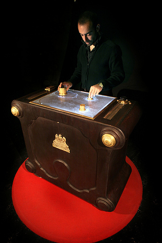 Yann est venu à Erasme à plusieurs reprises travailler avec l’équipe afin de réaliser deux des mécaniques poétiques, la cage et le Welo. L’équipe d’Erasme est aussi intervenue pour aider à finaliser plusieurs autres oeuvres. Cette rencontre fructueuse donne à voir actuellement une étonnante exposition d’objets que l’on dirait anciens et surnaturels, dont la manipulation relève de la magie poétique et fait appel à des technologies très poussées sans que le public ne s’en rende compte.