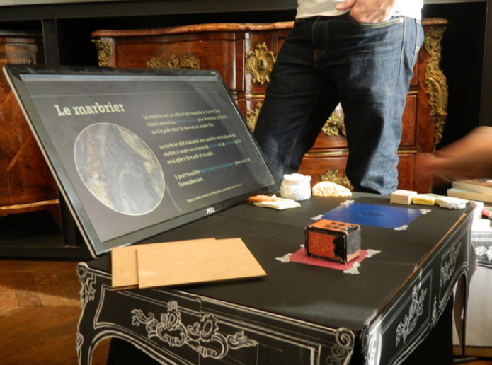 Ce genre de dispositif est à penser non seulement comme s’adressant au visiteur autonome, mais aussi comme dispositif de médiation. Et autant l’écran se défend dans un usage individuel autant la manipulation d’objets est beaucoup plus visible et facile à partager par un groupe.