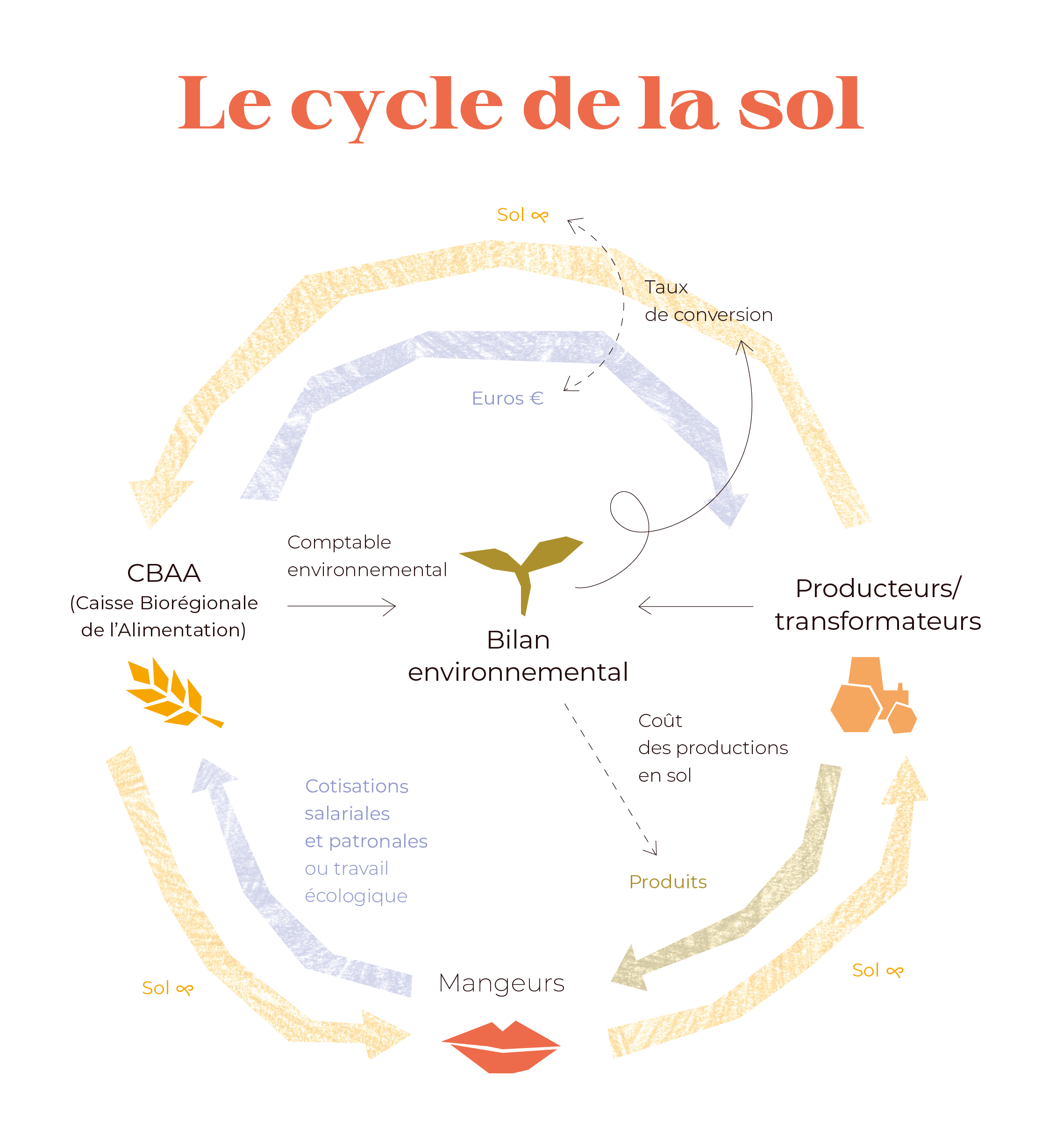 Chaque habitant·e reçoit la même quantité de sol dans la biorégion : 355 sol par mois pour un adulte, correspondant à l’ensoleillement équitablement réparti entre toutes et tous. Certains produits deviennent ainsi très accessibles, proches de la gratuité (céréales, légumineuses, fruits et légumes, produits peu transformés…) tandis que d’autres deviennent des produits festifs que chacun ne peut consommer qu’occasionnellement (produits transformés, viandes rouges, sucre…).