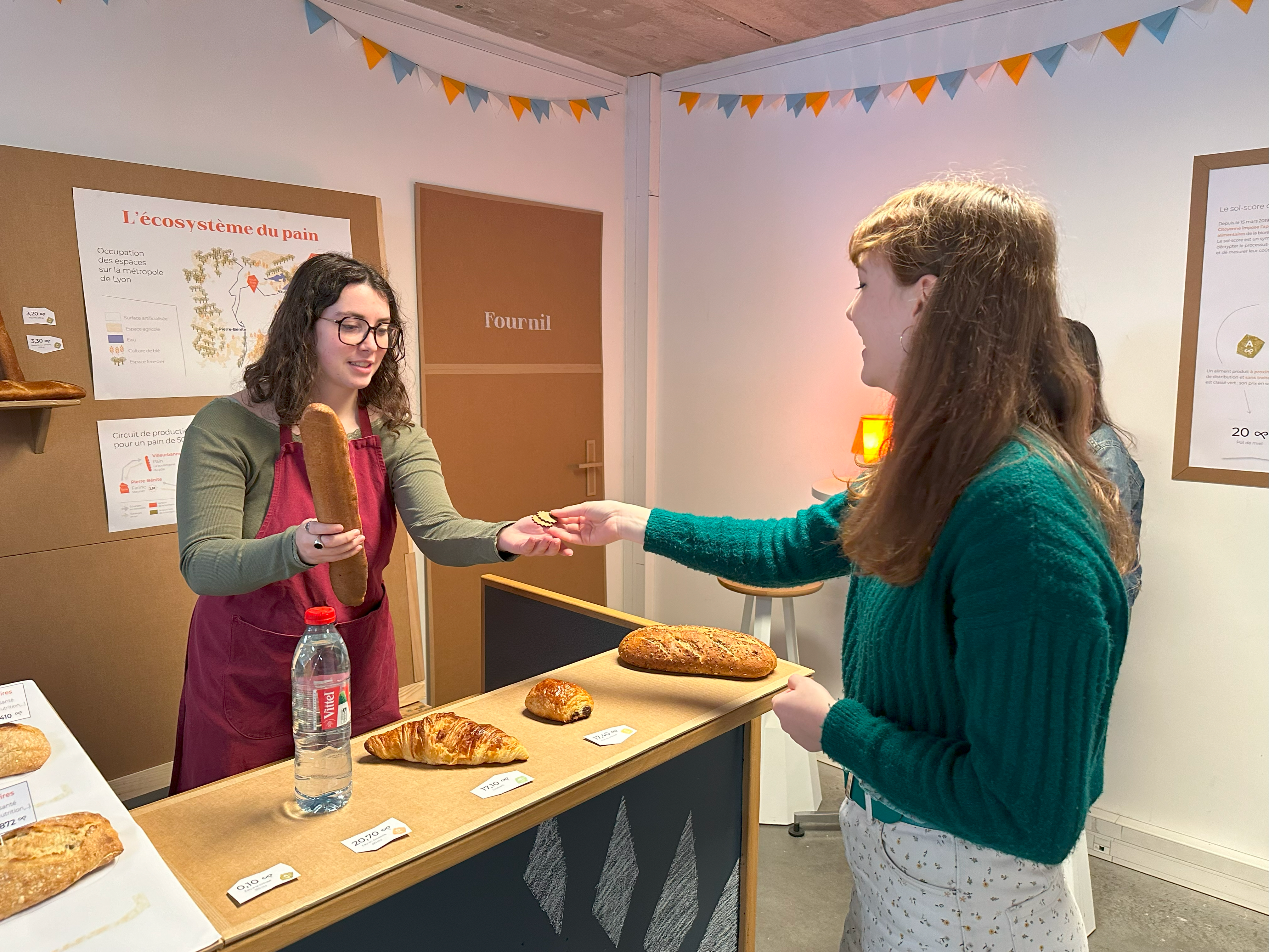 - Iel vous indique également que vous tombez bien, un stand est présent en ce moment dans la boulangerie pour célébrer les 5 ans de la sol : outre acheter un pain délicieux, vous pourrez discuter des grands principes, de la mise en place et du futur de cette monnaie avec un·e médiateur·ice de la métropole de Lyon.