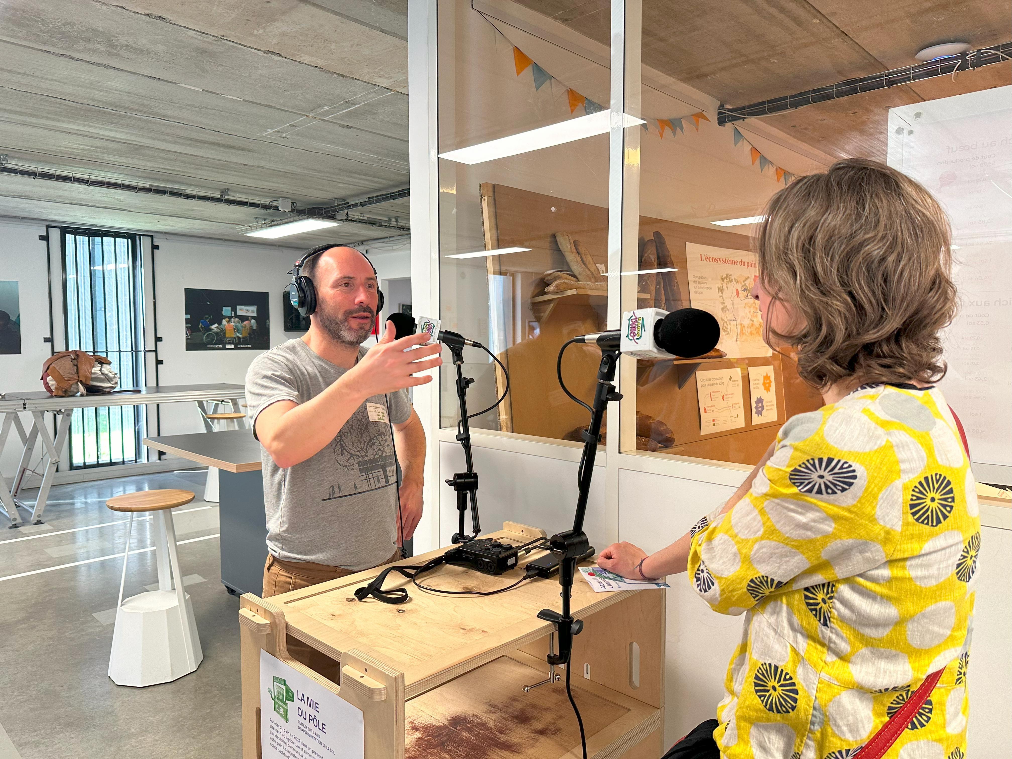- On vous propose ensuite de rejoindre un·e journaliste présent·e pour l’événement devant la boulangerie afin de partager votre expérience, poser vos questions et faire part de suggestions pour le futur de la monnaie.