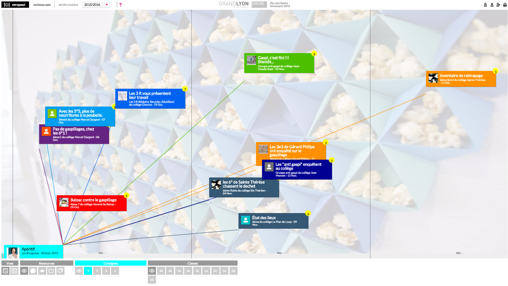 Des ressources sont également mises à leur disposition par les services de la Métropole de Lyon ; une diététicienne et les services du développement durable et de la propreté communiquent avec les classes via le blog MORDICUS.