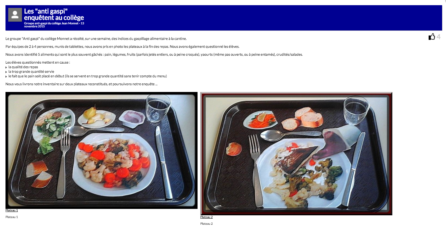 Des recettes illustrées sont partagées, le cuisinier du collège est interviewé...