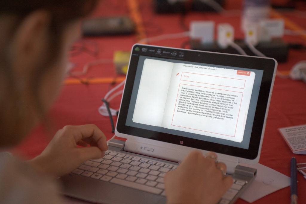 Chaque prologue pouvait être suivi de 4 chapitres. Une table équipée de 10 ultra-PC était mise à la disposition du public. A côté de votre ordinateur, vous trouviez une tour de legos indiquant le nombre de chapitres déjà écrits, ainsi qu’une fiche scripte laissée par les auteurs précédents afin de vous donner quelques indications sur la teneur de leurs écrits.