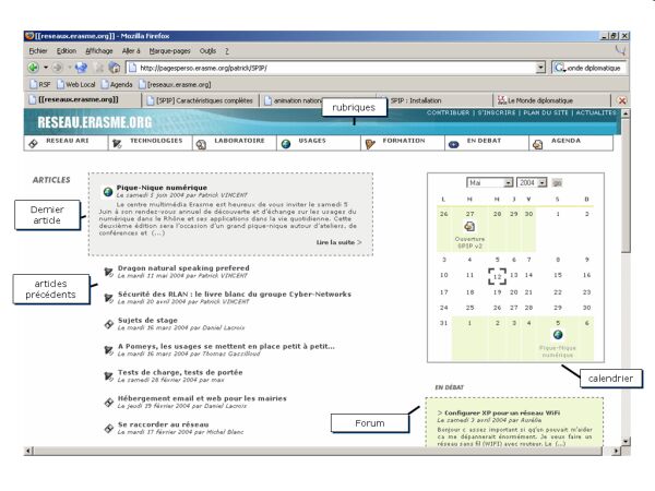 - WebZine : stocke et présente du contenu de type documentaire (articles multimédia).