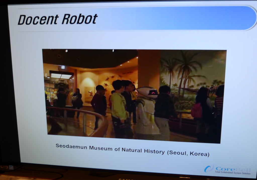 - Directement appliquée à la médiation au musée, la Sté Coréenne Corebell propose un robot capable d’emmener un groupe dans le musée de la préhistoire de Deajeon.