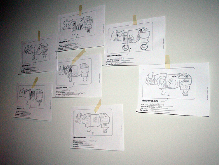 Par contre, le défi principal consiste à trouver contenus qui soient bien adaptés aux objets augmentés et qui aient du sens. Dans le cas du Rhinocéros l’enjeu est de faire le lien avec le travail d’appropriation et de médiation lié aux dessins des visiteurs. Ceux-ci découvraient que le Rhino est en fait un secrétaire, étaient invités à le dessiner et à le remplir avec leurs affaires. On imagine bien comment une voie retour pourrait être développé de manière à ce que ce travail apparaissent en vidéomapping sur le Rhino.