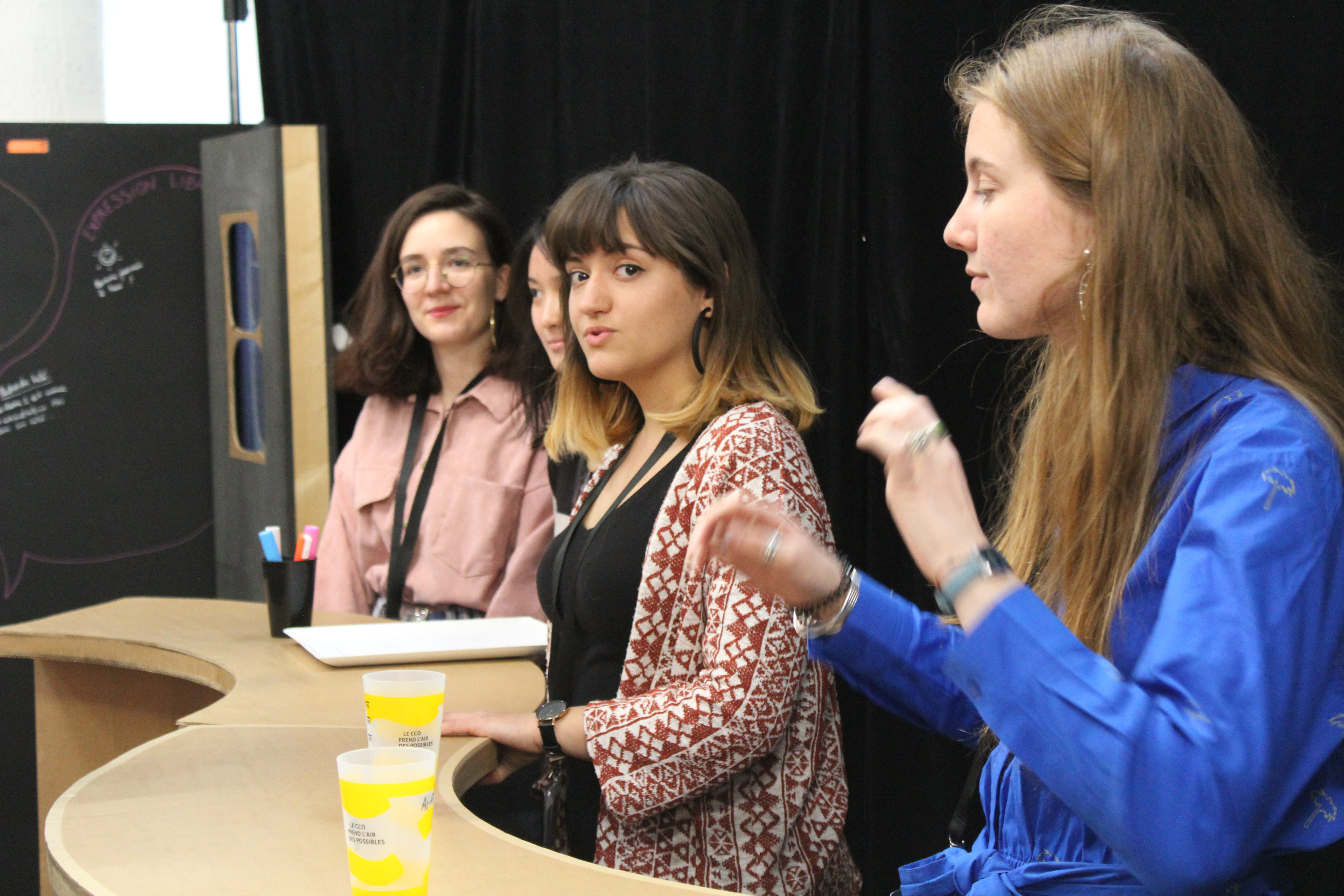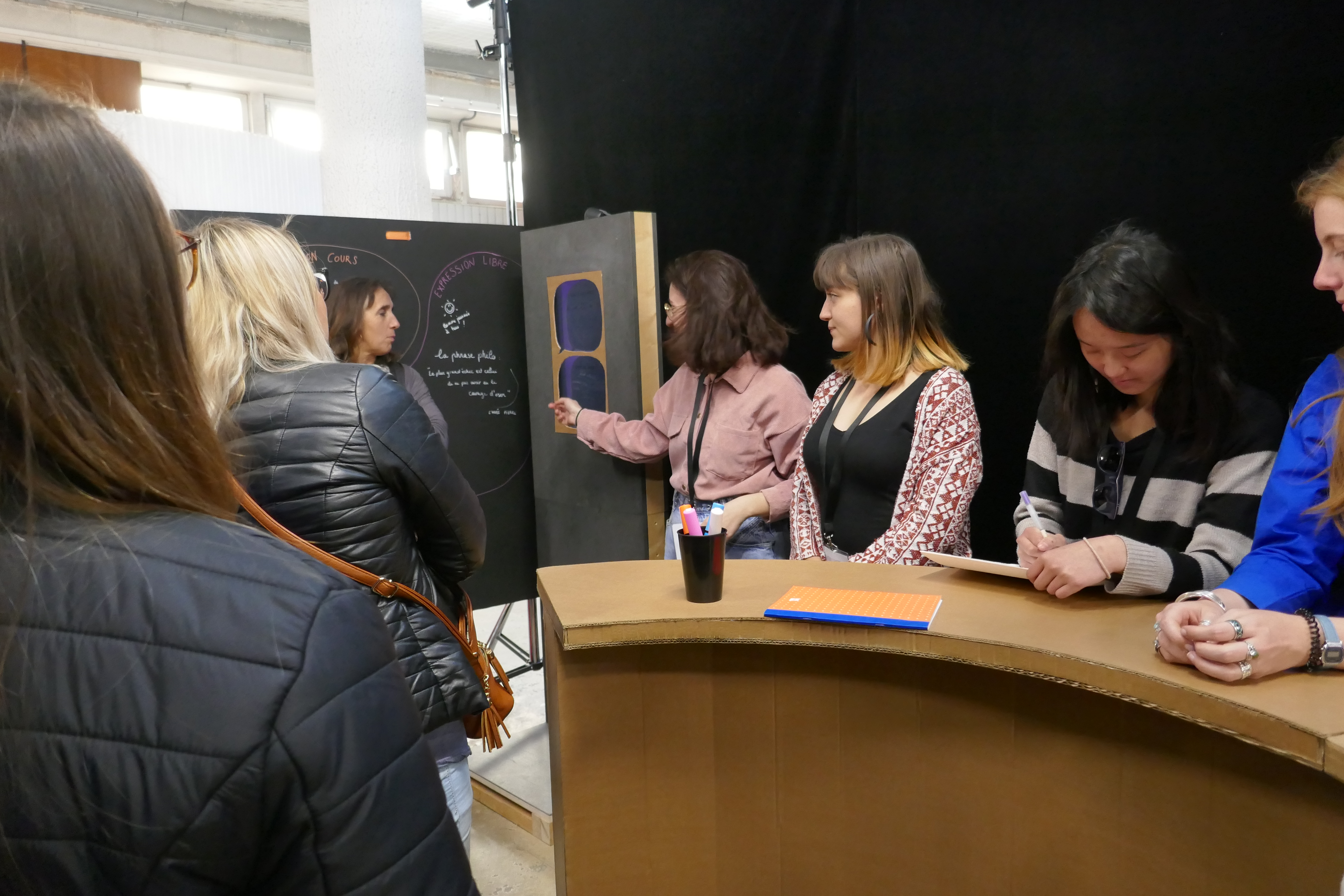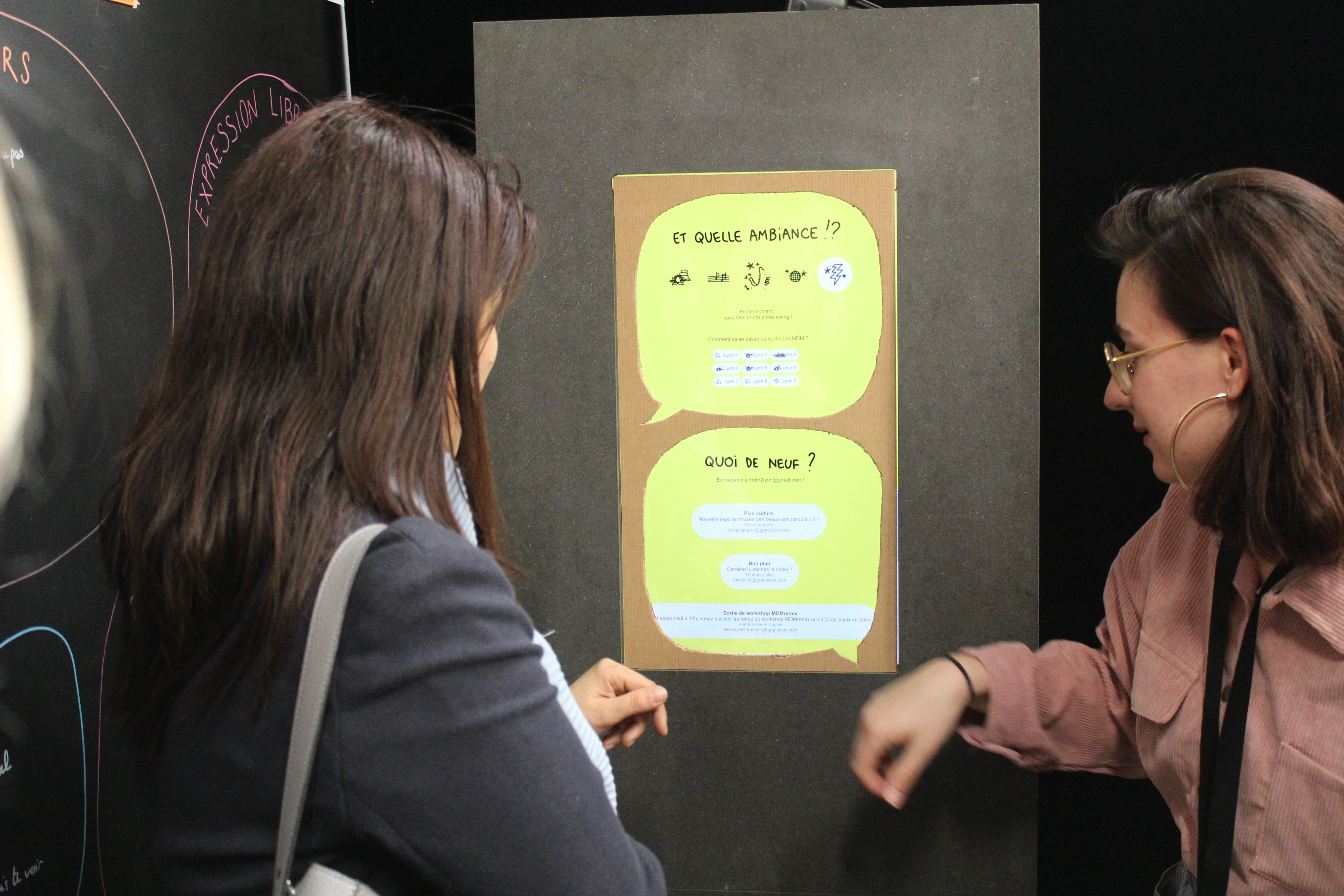 Un lieu modulaire est créé en regroupant des mobiliers interactifs : une interface tactile responsable de l'ambiance et des actualités, un mur d'expression pour partager les bons plans et demander des coups de main, ou encore le traditionnel coin café.