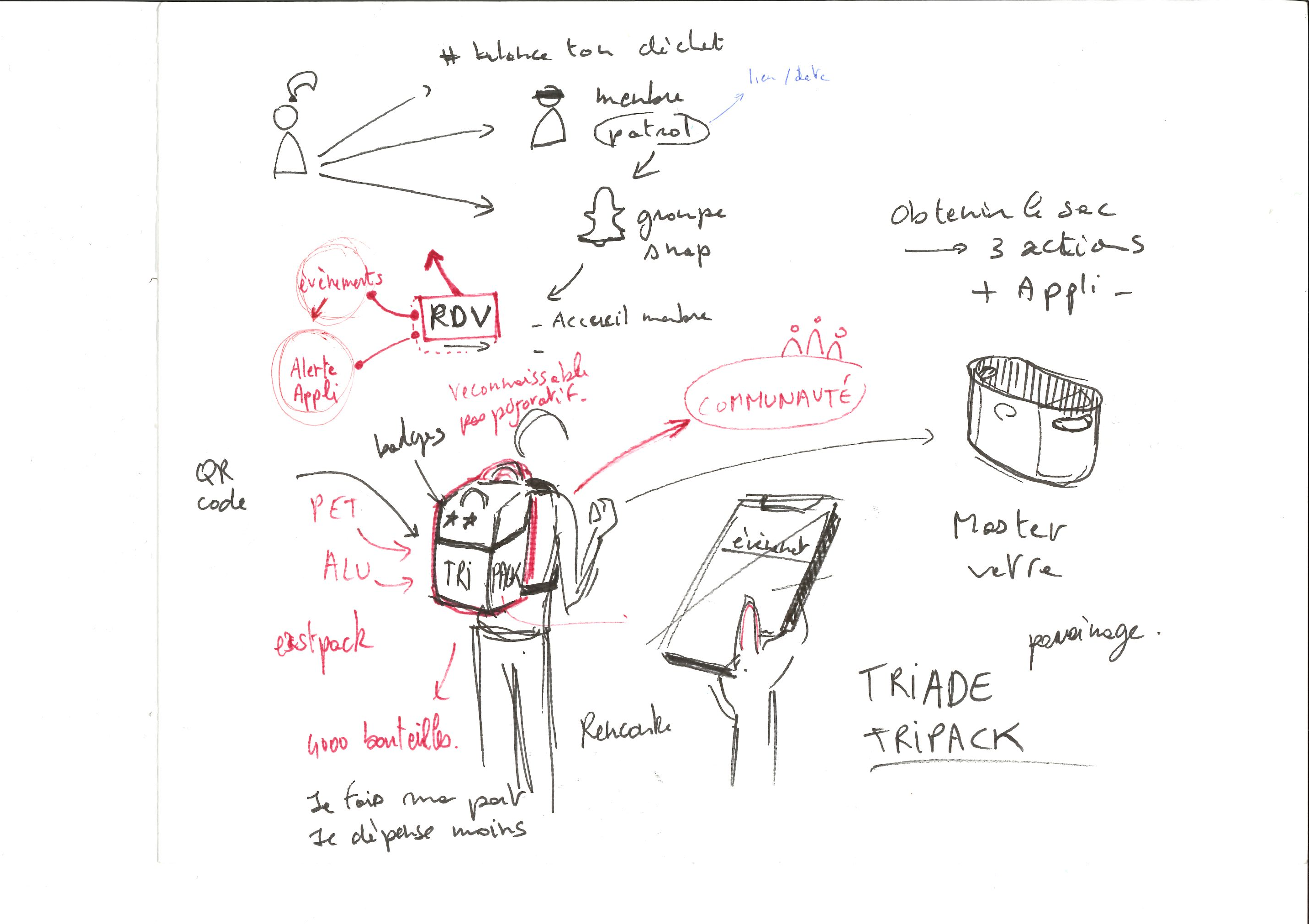 En intégrant à un élément du quotidien (sac à dos) un moyen de participer facilement au tri, sensibiliser et engager les jeunes à prendre part à l’action que représente le tri et le recyclage. Le sac, fait en matière recyclable est "remboursable" en recyclant ses déchets.