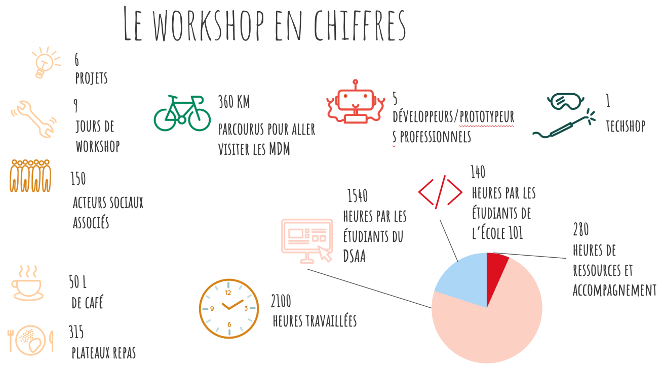 Neuf équipes, composées de 77 volontaires, bénéficiaires, designers, développeurs, agents d’accueil et travailleurs sociaux ont transformé la MDM de Lyon 9e en espace d’innovation temporaire, sous l’impulsion des équipes d’ERASME.