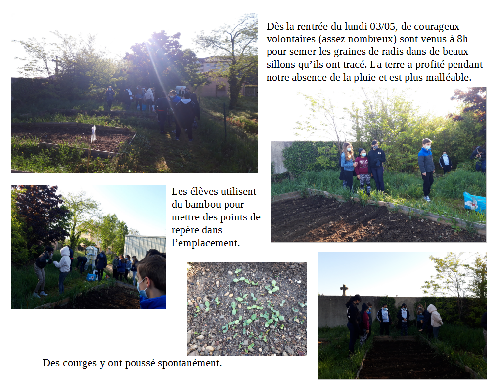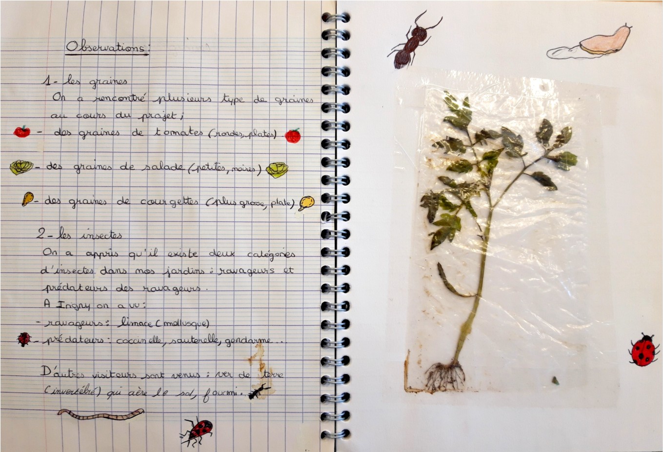 Le goût de la thématique leur est vite venu, avec la réalisation d’un travail de recherche important ; sur les légumes cultivés dans la région. Ils cultivent et personnalisent leur carnet de pousse, qui leur permettra de suivre et de partager sur internet l’évolution de leurs plantations.