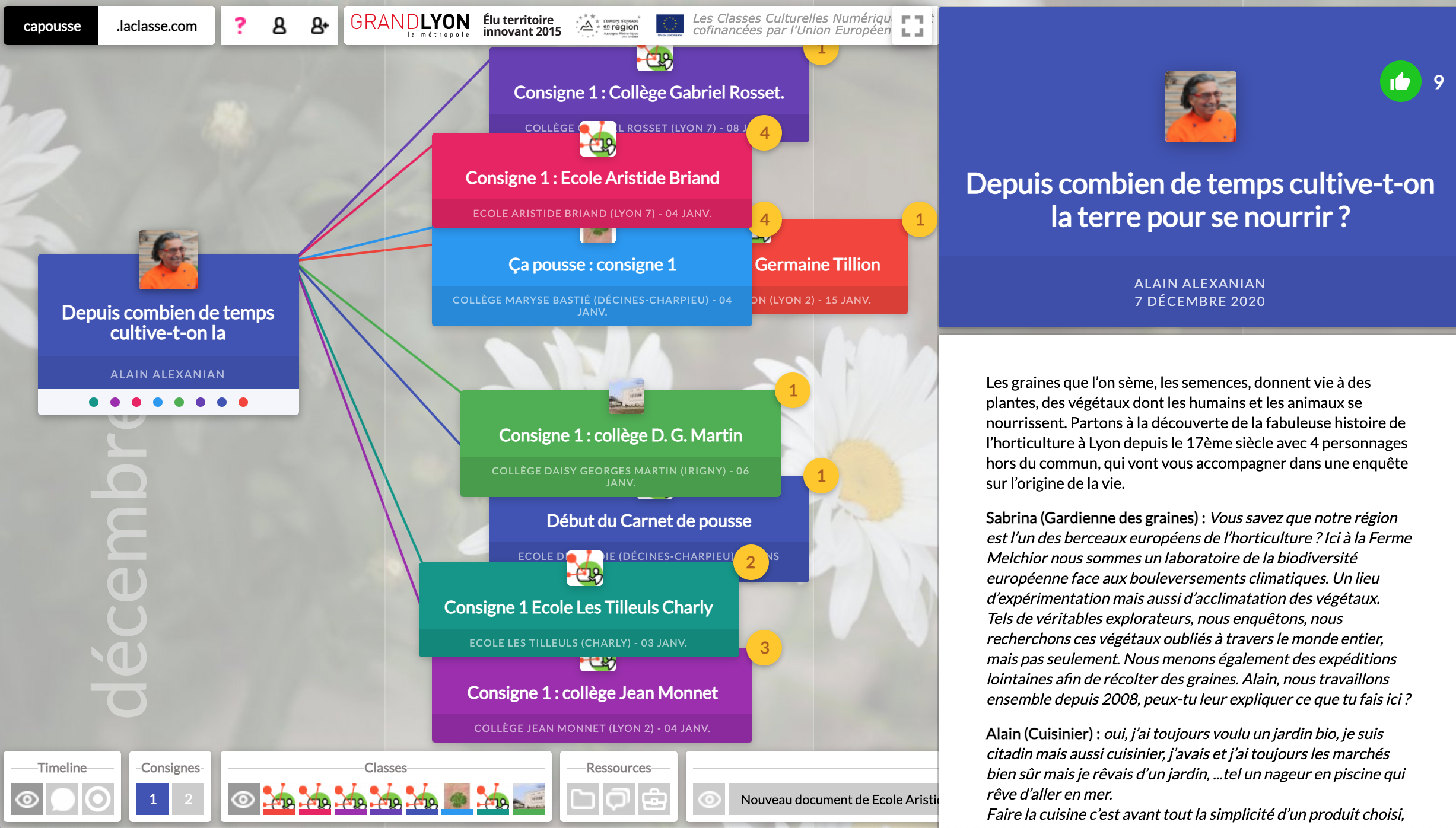 Alain, le cuisinier, Vincent, le maraîcher, Sabrina et Lucile, accompagnent 8 classes durant toute l’année pour une aventure en ligne, de la graine à l’assiette ! Les élèves ont déjà répondu à la première consigne en présentant leur classe, leur collège, leur jardin et même leur arbre cozodiacal pour certains.