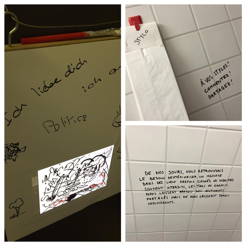 Ce projet s’intéresse aux espaces non éditorialisés du musée de la communication : escaliers, toilettes, casiers de consigne… et il en fait des espaces de communication informelle interconnectée. Des surfaces permettent de dessiner des graffitis et d’y répondre à distance.