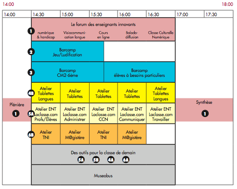 Des interventions en plénières permettront de souligner les enjeux actuels des TICE et l’essentiel de la journée s’articulera entre des ateliers pratiques, des temps d’échanges prospectifs et créatifs (barcamps), des présentations de pratiques numériques originales d’enseignants du Rhône. Vous pourrez découvrir en avant première la prochaine version de l’Ent laclasse.com et contribuer à sa conception.